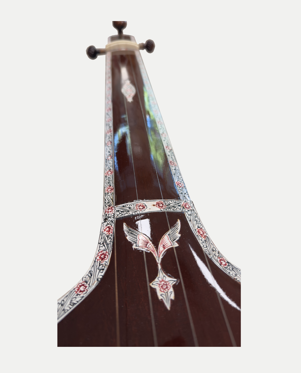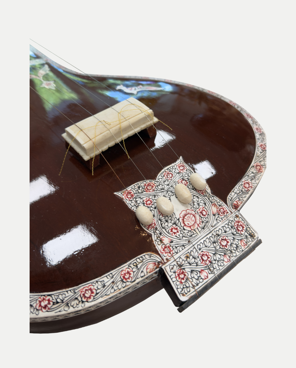 Strumento artigianale realizzato a Calcutta, città con una lunga tradizione nella costruzione di strumenti classici indiani. Ogni pezzo è unico e può variare leggermente nelle dimensioni.