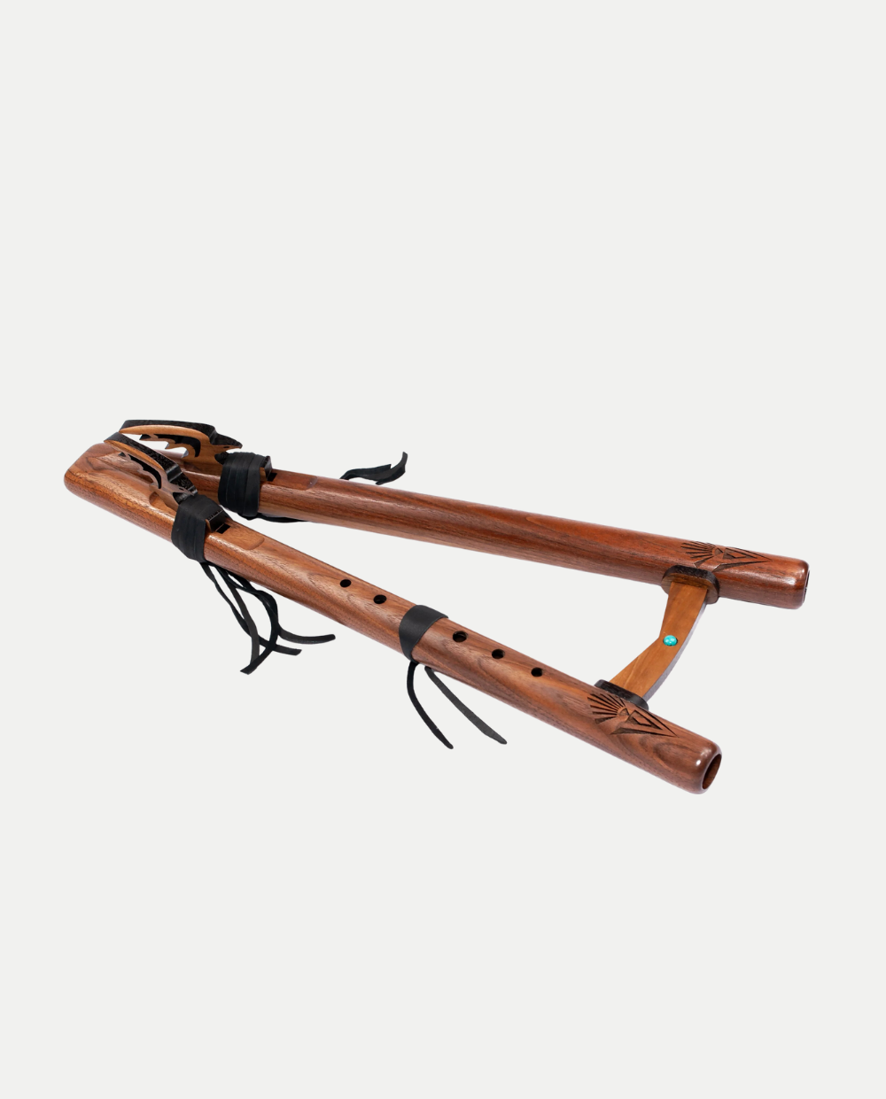 Il Flauto Twin Tail Double in tonalità di Sol minore (G minor) è un flauto doppio artigianale realizzato in legno di Noce americano, un’essenza dura e robusta che regala allo strumento una voce chiara, brillante e ricca di sfumature. Ogni flauto presenta venature e tonalità uniche, rendendo ogni pezzo irripetibile.