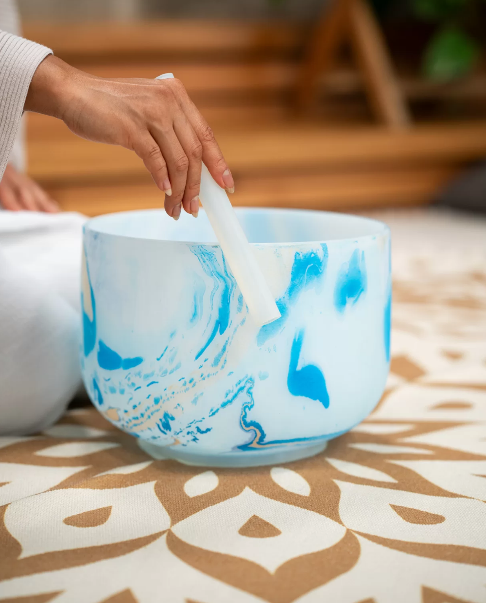 You can use crystal singing bowls for a variety of purposes: chakra healing, meditation, sound therapy, yoga, improving the Fengshui of your home, regulating your emotional state, or even to decorate the room.