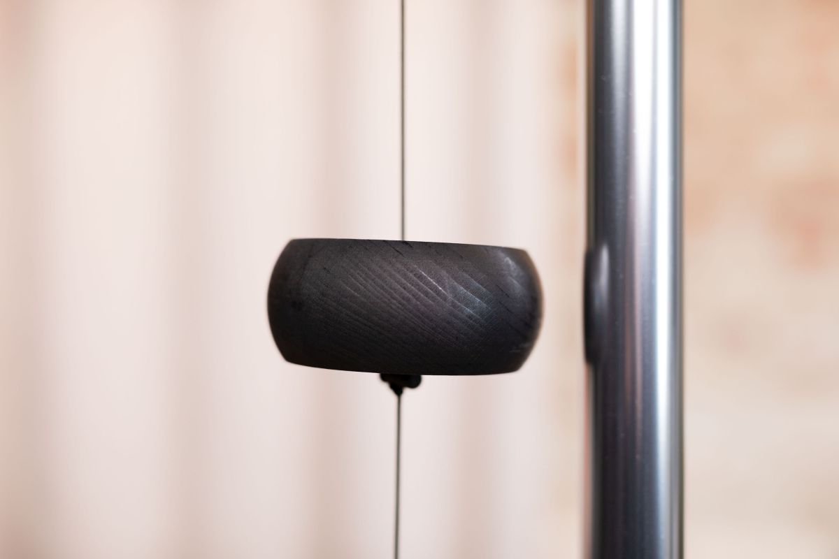 You can either statically attach the Meditation Wind Chime to the top of the aluminum ring or hold it with one hand and play it with the other while moving it. Control the sound by gently tilting the string to the side to strike the bells. With an adjustable clip under the wooden pendulum in the center, you can vary the number of strikes (the higher the pendulum, the fewer strikes) or stop it completely (position the pendulum high).