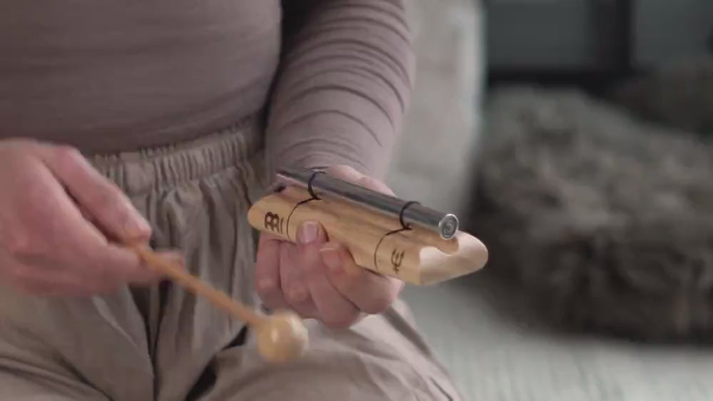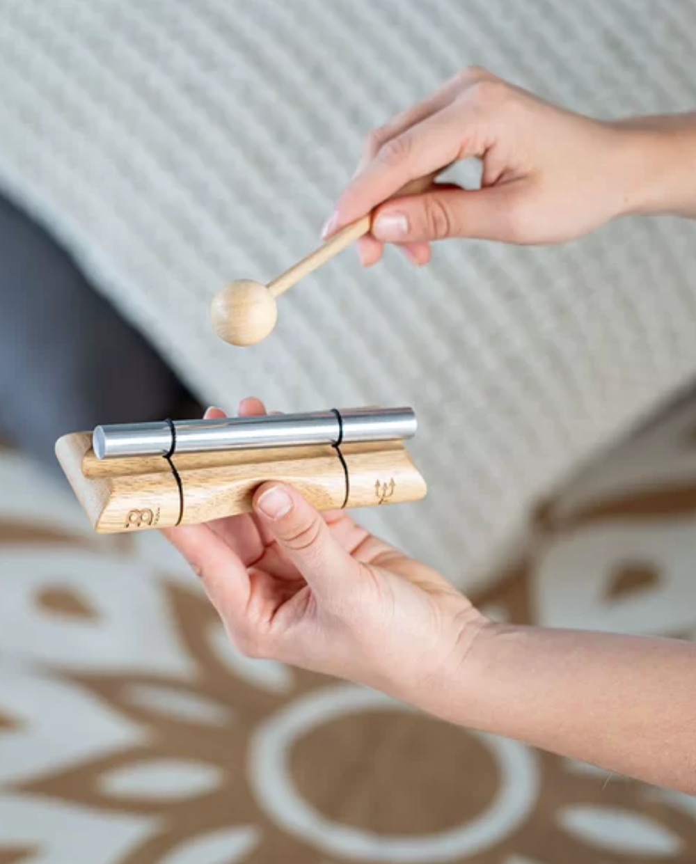 With a clear, high-pitched sound, these Energy Chimes are ideal for sound therapy, meditation, and classroom settings, or can be used as a chime. Each chime features a wooden beater that produces a clear chime , filling spaces with a soothing, enveloping sound. The beater can be conveniently stored under the bell inside the base.