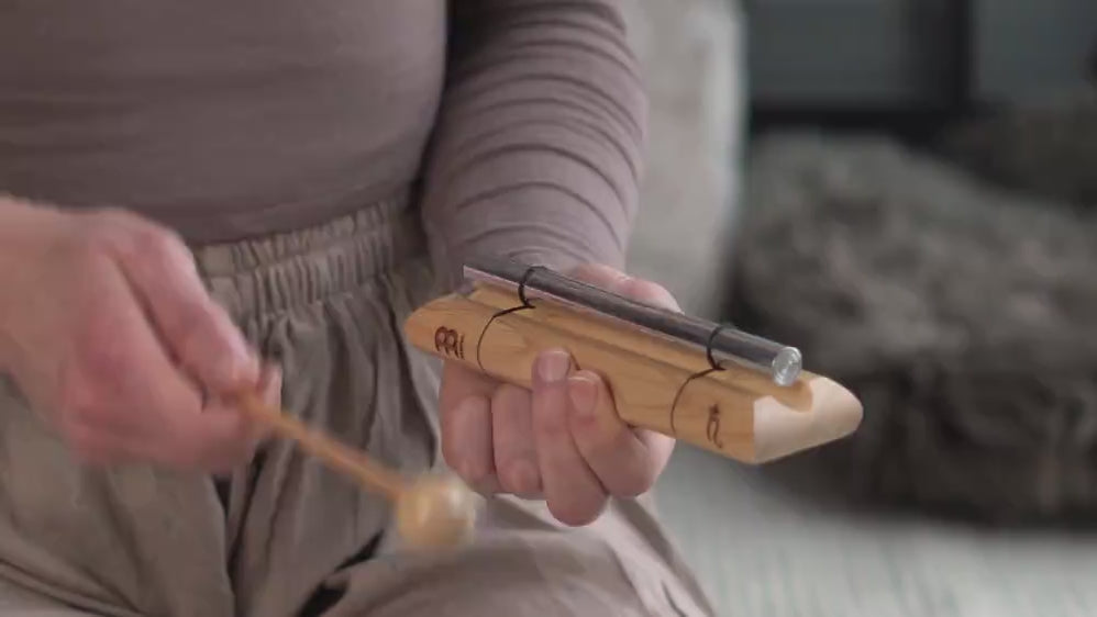 With a clear, high-pitched sound, these Energy Chimes are ideal for sound therapy, meditation, and classroom settings, or can be used as a chime. Each chime features a wooden beater that produces a clear chime, filling spaces with a soothing, enveloping sound. The beater can be conveniently stored under the bell inside the base.