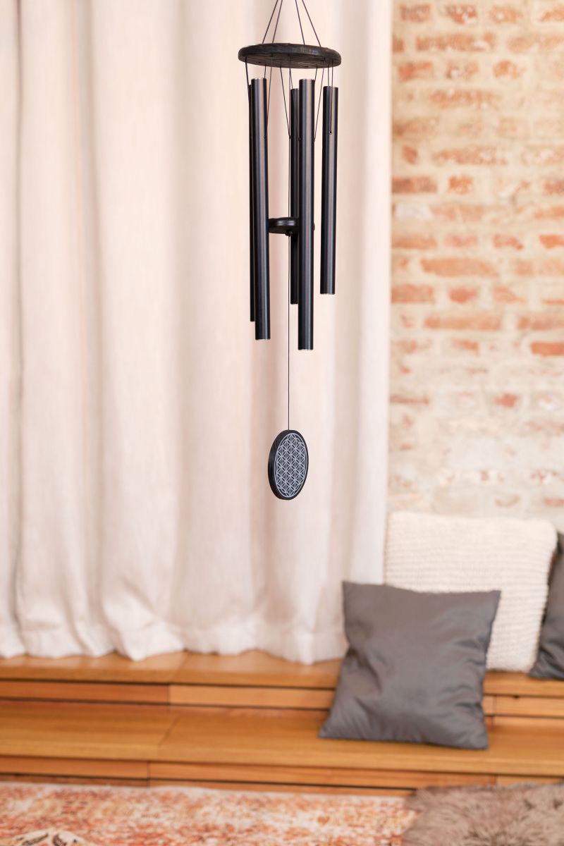 The Meditation Wind Chime | Flower of Life, Black is ideal for meditation, relaxation, therapeutic applications or even to decorate your garden and home. Its magical sound fills the entire room and invites you to dream.