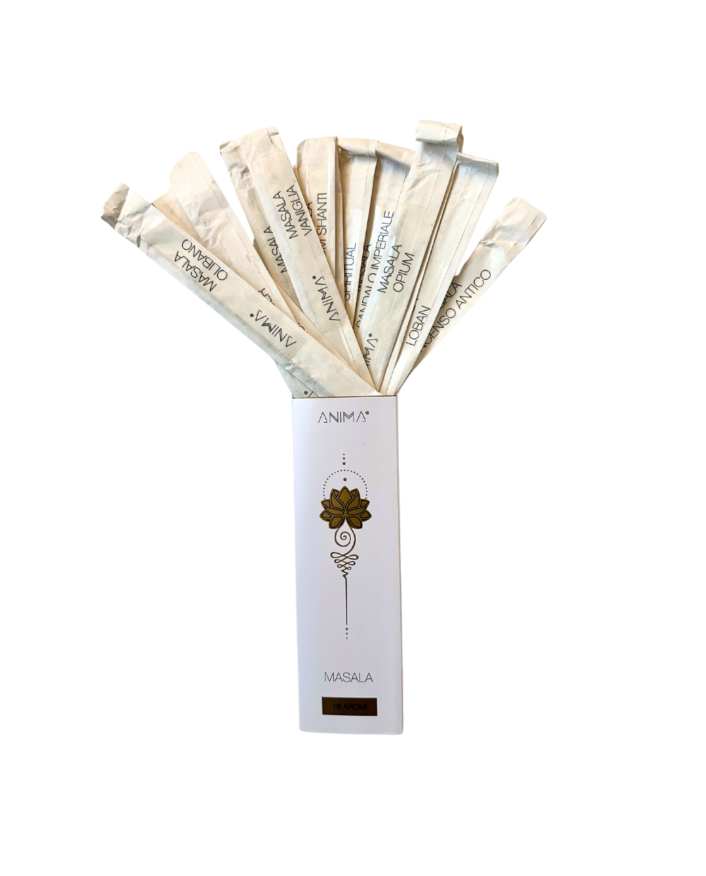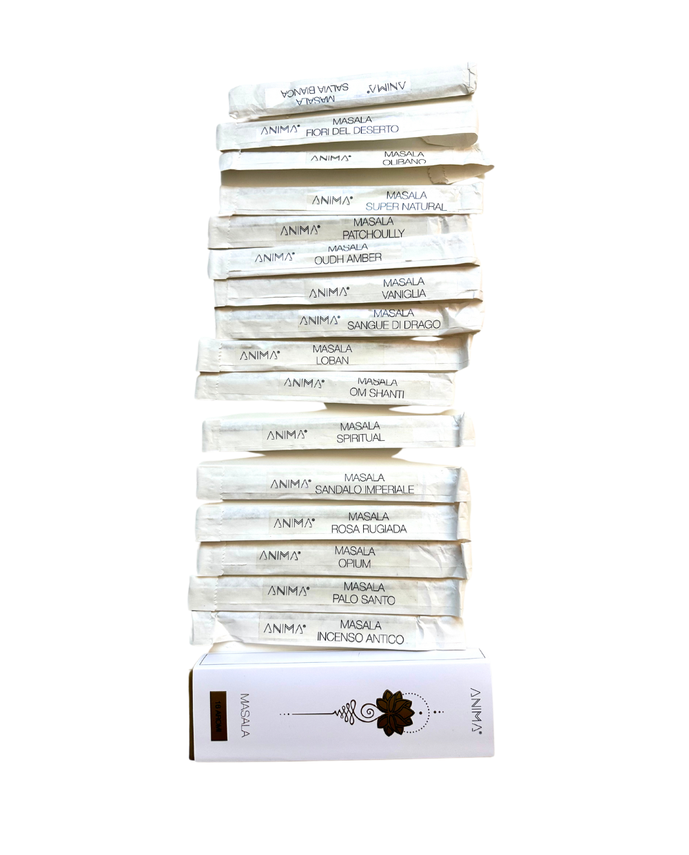 Each stick is produced following the "Secular Masala production process", mixed with : wood and vegetable powders, resins, mosses, roots, flowers, essences and vegetable charcoal.