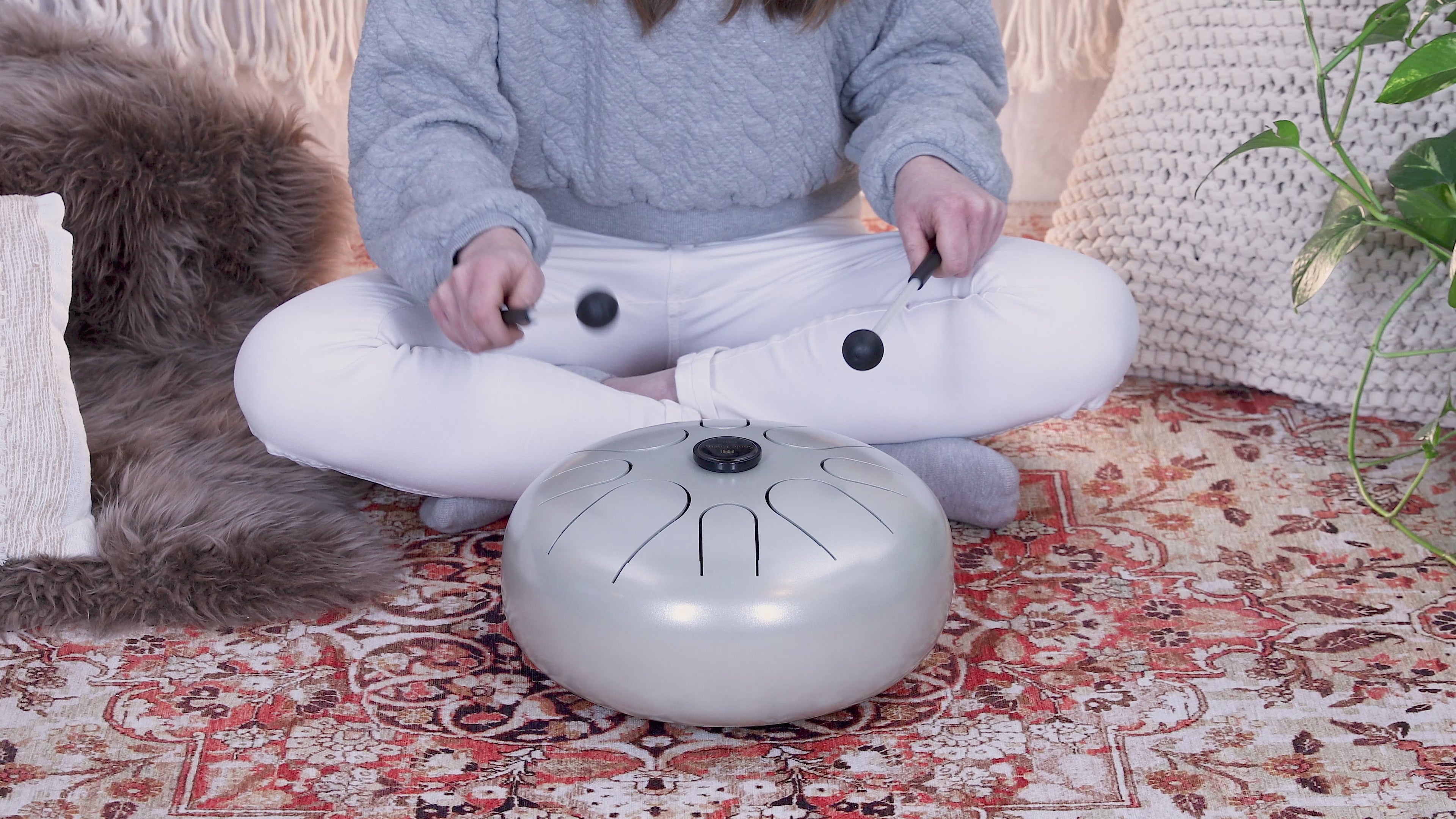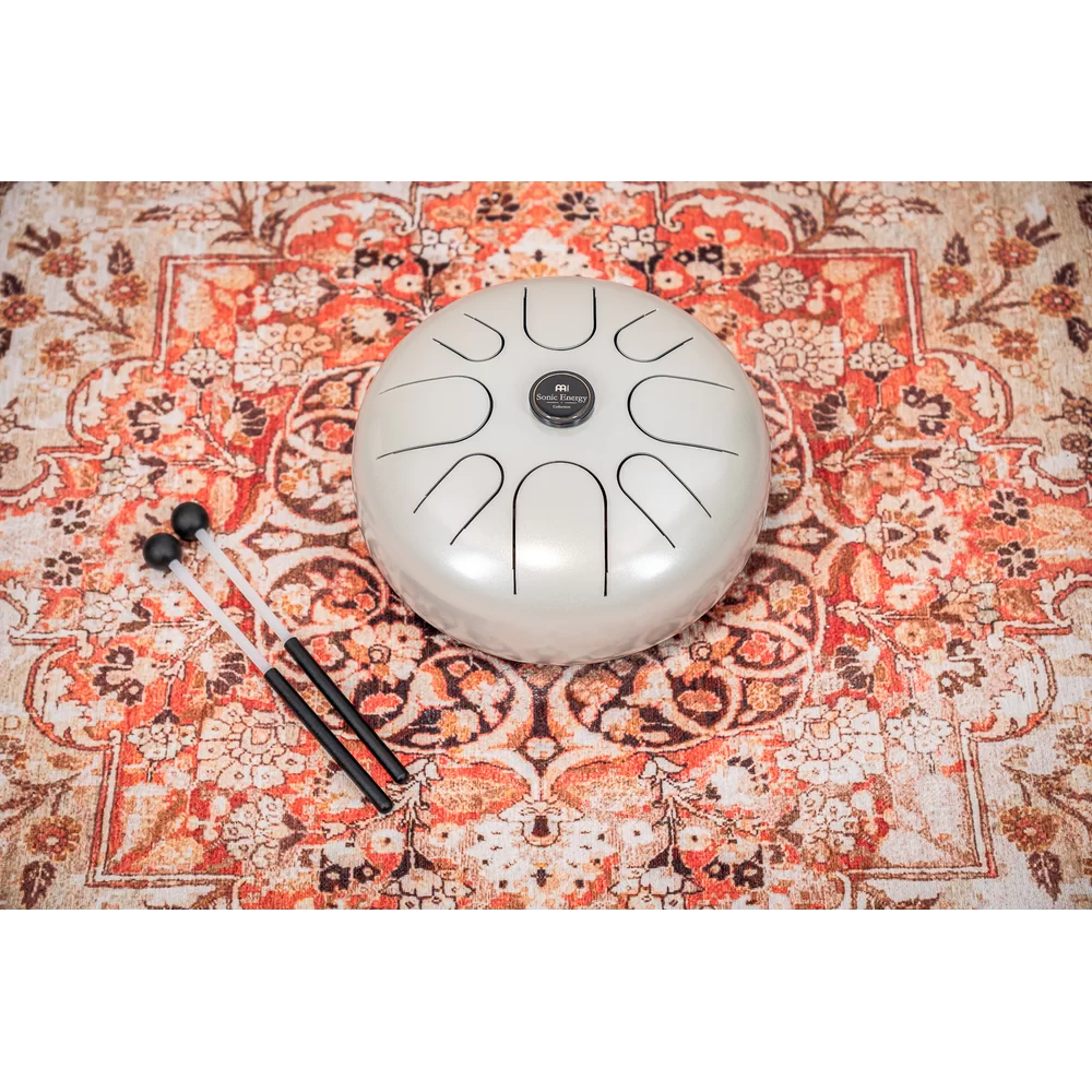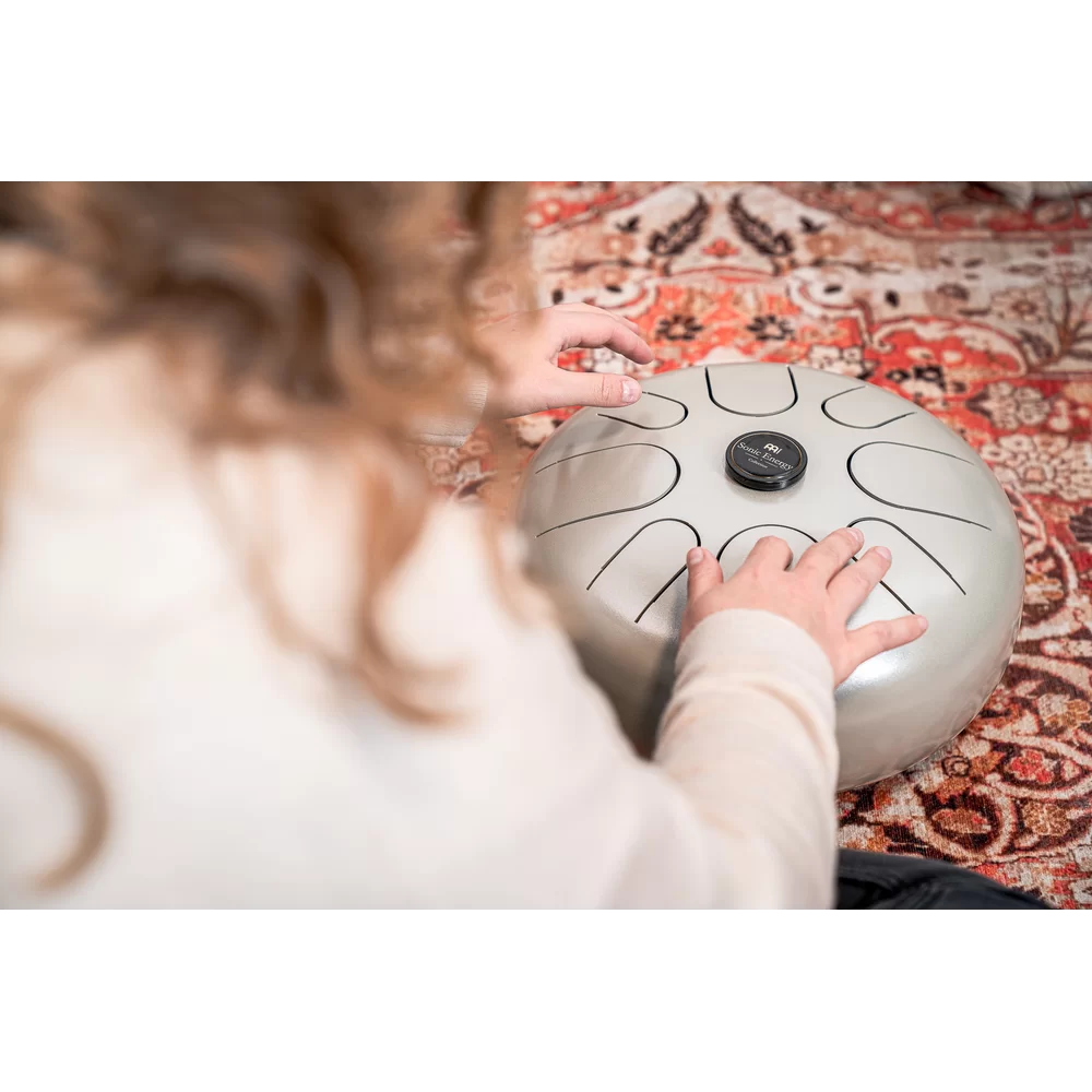 The Sonic Energy 12'' Steel Tongue Drum | Pearl Gray in G Minor is a rich, full-sounding instrument that can be played with either hand or with the included pair of rubber mallets . Precision-crafted to deliver beautiful, expressive melodies, these drums are a fantastic piece for solo performances and are equally suited for ensemble use. Tuned to the key of G minor (G3, Bb3, C4, D4, F4, G4, Bb4, C5) and available in durable Pearl Gray finishes, these Sonic Energy masterpieces will inspire novice and professional players alike. An included padded gig bag helps protect the instrument during transport or when not in use.