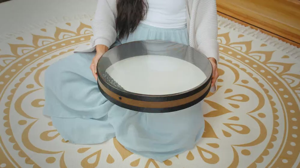 Hold the instrument flat and gently move it from left to right to enjoy the beautiful sounds of the ocean. You will quickly feel like you are on vacation at the beach. The Wave Drum is perfect for meditation, yoga, relaxation exercises, sound healing sessions and as a percussive instrument. Wave Drums offer a versatile addition to your music and wellness practice.