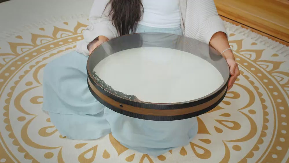 Hold the instrument flat and gently move it from left to right to enjoy the beautiful sounds of the ocean . You will immediately feel like you are on vacation at the seaside. The Wave Drum is perfect for meditation, yoga, relaxation exercises, sound baths .