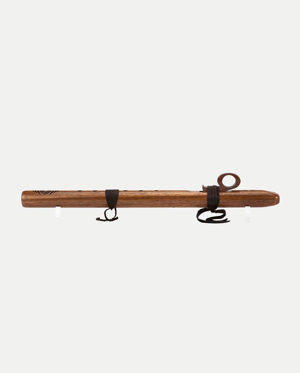 È uno strumento a sei fori, ma viene fornito con una legatura in pelle sul terzo foro dall’alto (sesto foro), permettendo di suonarlo anche come flauto a cinque fori, opzione ideale per chi si avvicina per la prima volta al mondo dei flauti nativi. Oltre alla tonalità in La minore, consente l’esecuzione della scala diatonica relativa in Do maggiore.