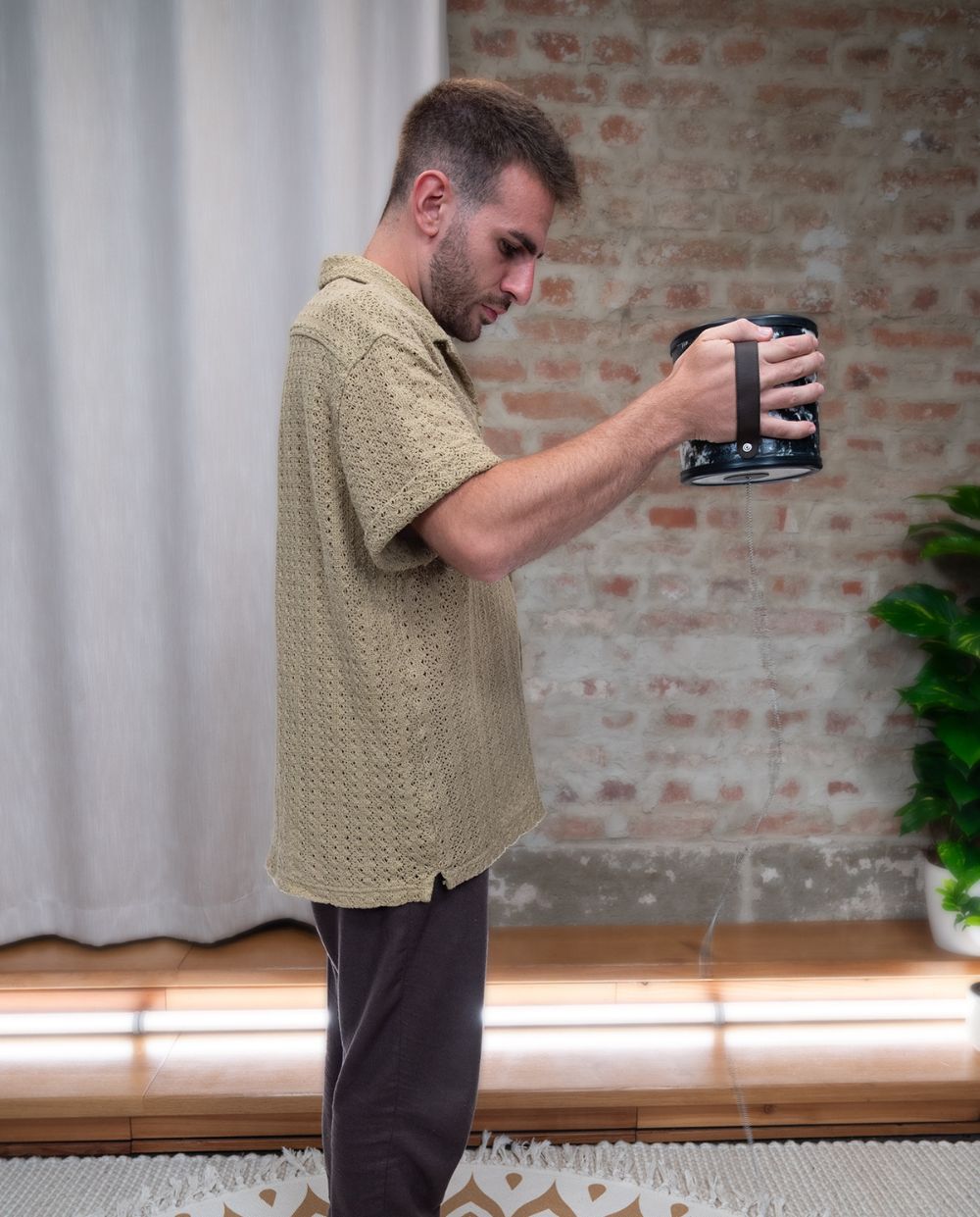 The Meinl Sonic Energy "Deep Sound" Thunder Drum | Piccolo produces powerful, deep, resonant sounds similar to the rumble of thunder. Made of lightweight synthetic material, it's comfortable to hold and easy to play. Leaving the metal spring free to oscillate and guiding it with gentle wrist movements creates the characteristic thunder sound. Striking the spring with your hand creates crisper, crisper accents. Opening and closing the sound hole allows for further tonal variation, including expressive wah-wah-like effects.
