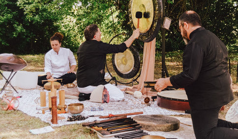 Ti troverai immerso in un'atmosfera di calma e serenità; la luce soffusa e il profumo di oli essenziali contribuiranno a creare un ambiente rilassante. Durante la sessione verranno utilizzati più strumenti sonori come Handpan, tamburi rituali, Gong, Arpe, pianoforte, strumenti ancestrali e voce che producono vibrazioni sonore. Mentre ti sdrai comodamente su un tappetino, Emanuele, Elena e Samuele (sound healer certificati) suoneranno per voi ed entreranno in connessione con voi e con gli strumenti.